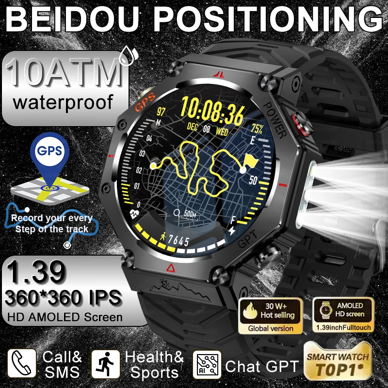 2026 New Ultra Original 10ATM Waterproof GPS Smart Watches Men Rugged Compass Military 100+ Sports Mode BT call Smart Bracelet
