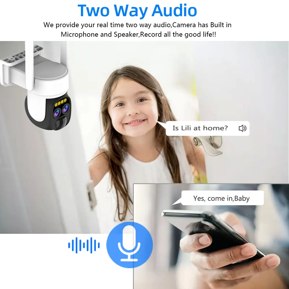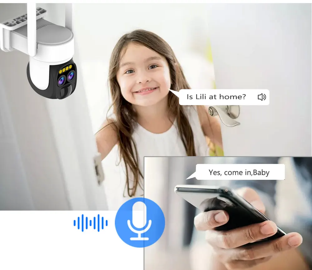 Camera is built with microphone and speaker. So you can talk to your kids via your Smartphone remotely whenever you want.