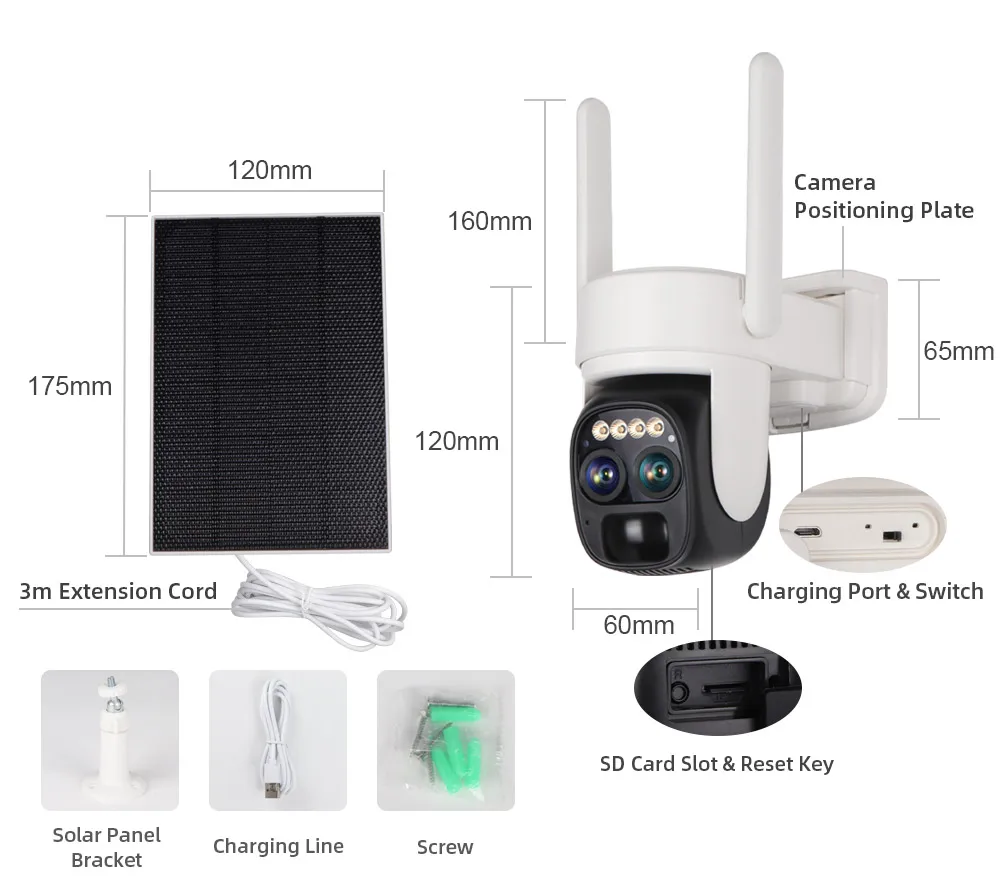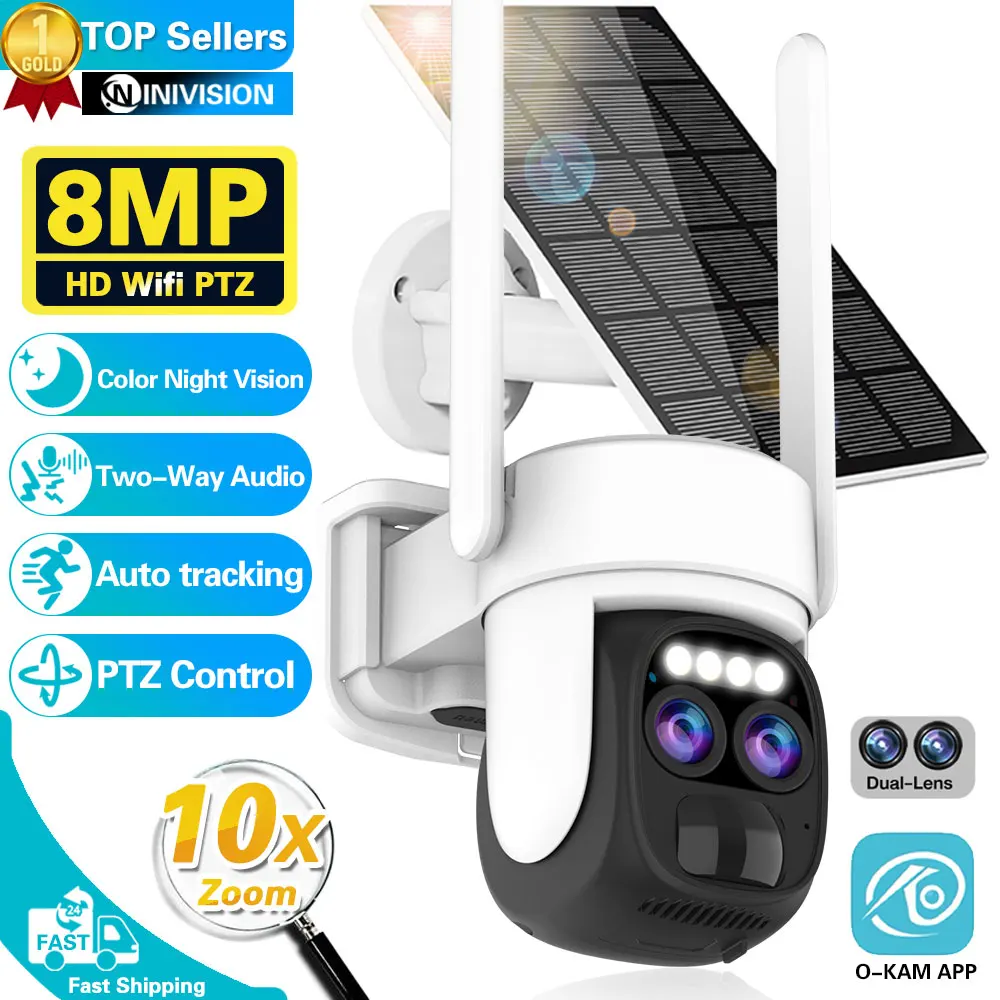 4K 8MP 360° PTZ Dual Lens WIFI Solar Series Battery Power PIR Auto Tracking Audio Outdoor Security CCTV Surveillance IP Cameras