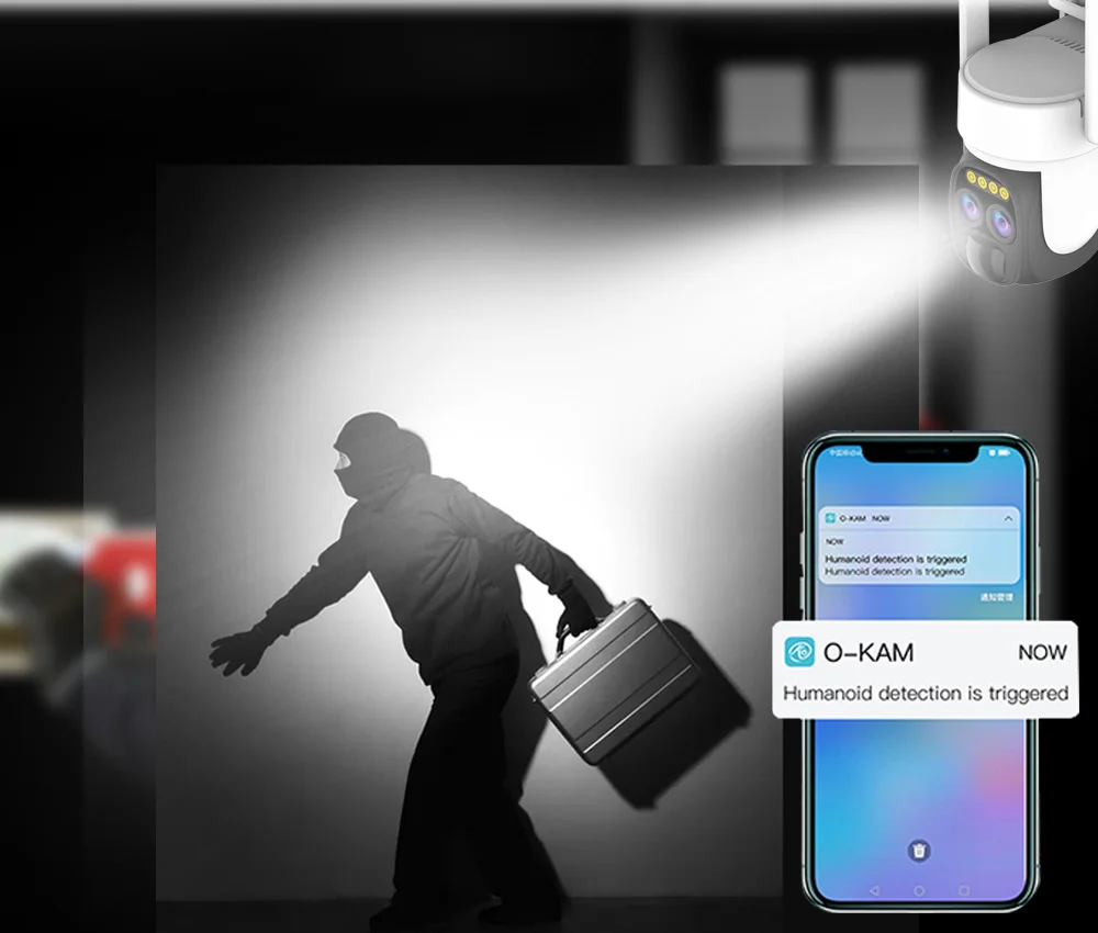 When someone passes through the alarm area, the camera will detect the person's movement. And track people.