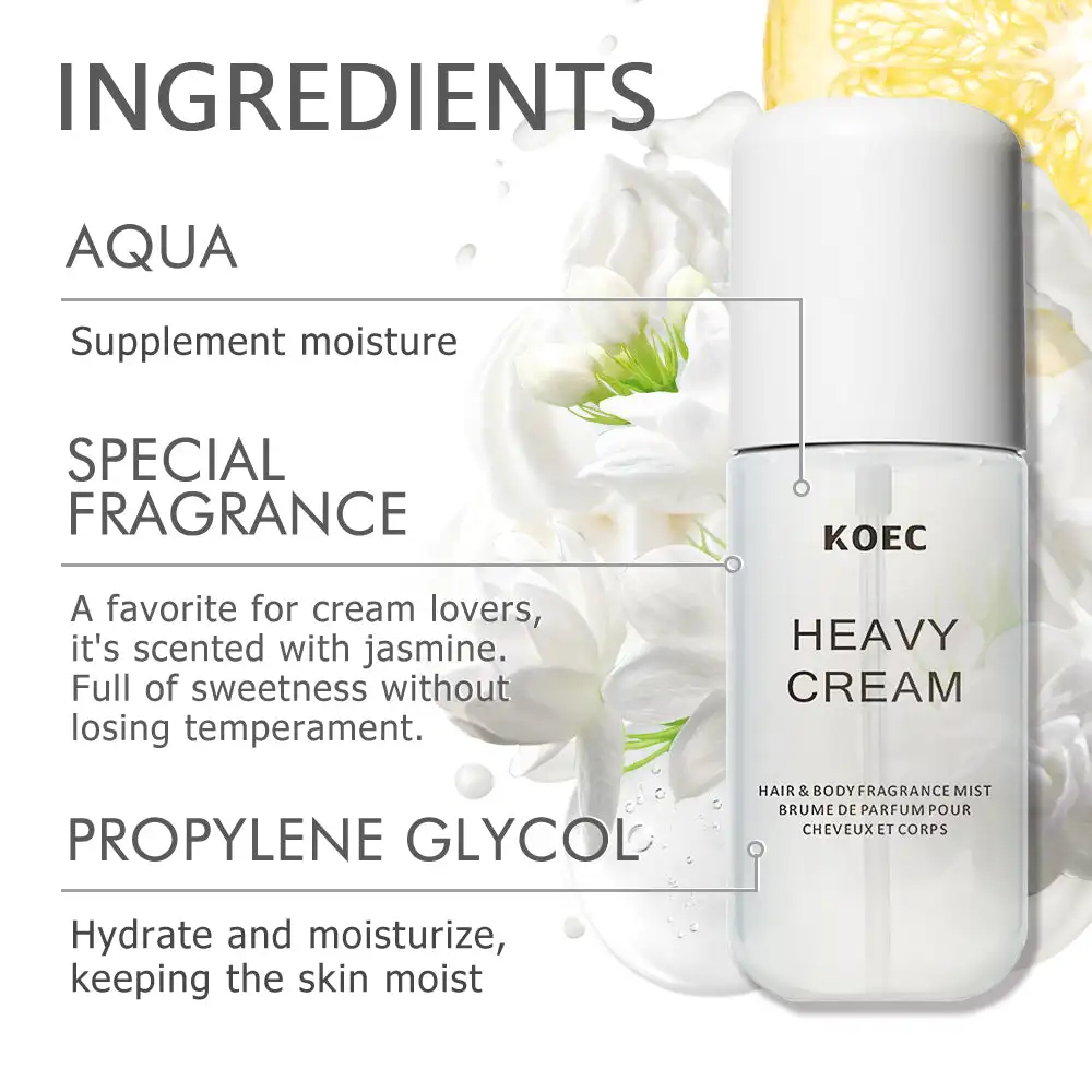50ml KOEC Heavy Cream Fragrance Mist Perfume Moisturizing Refreshing Triple Notes Jasmine Vanilla Lemon Sugar Propylene Glycol