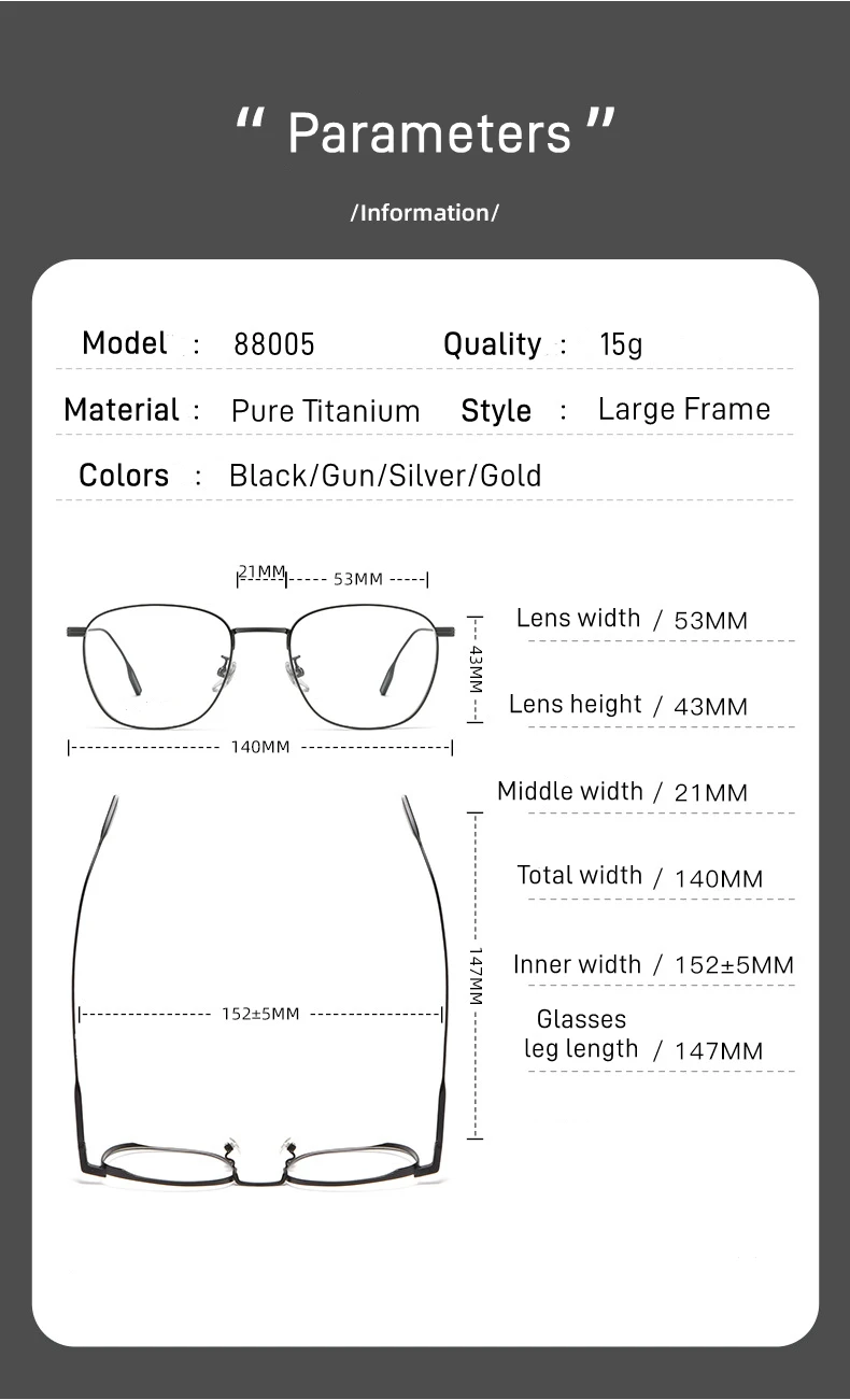 88005Ultralight Pure Titanium Round Anti Blue Light Reading Glasses for Men and Women Professional Customized Presbyopia Glasses