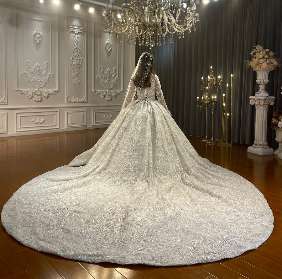 Custom Elagant Sheer Sleeves Bridal Gowns Beaded Sexy Neck Wedding Dress For Bride Embellished Lace Embroidered Romantic Princes