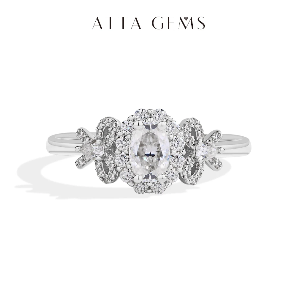 ATTAGEMS Luxury Moissanite Rings Oval Cut 925 Sterling Silver Ring Women Bow Design For Engagement Wedding FineJewelry Certified