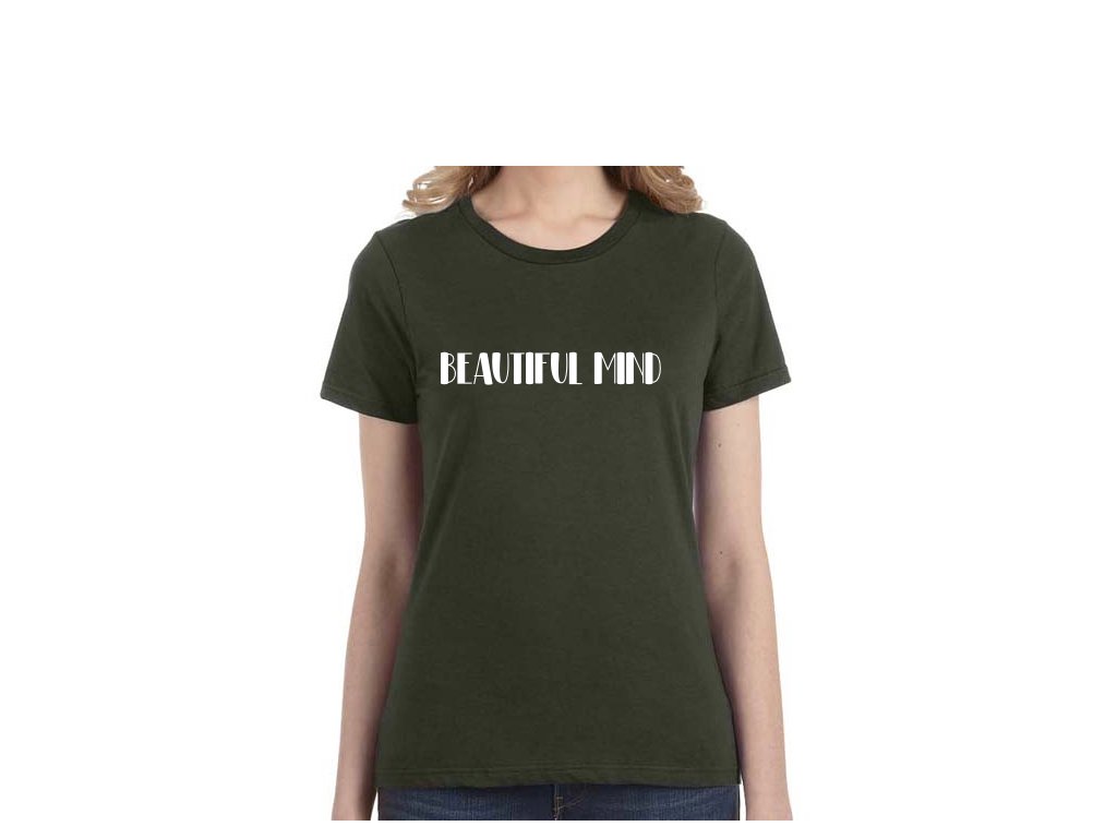 Celebrate confidence and inner strength with the “Beautiful Mind” women’s graphic T-shirt in a rich olive tone. Featuring clean, minimalist typography, this design blends elegance with meaningful expression.