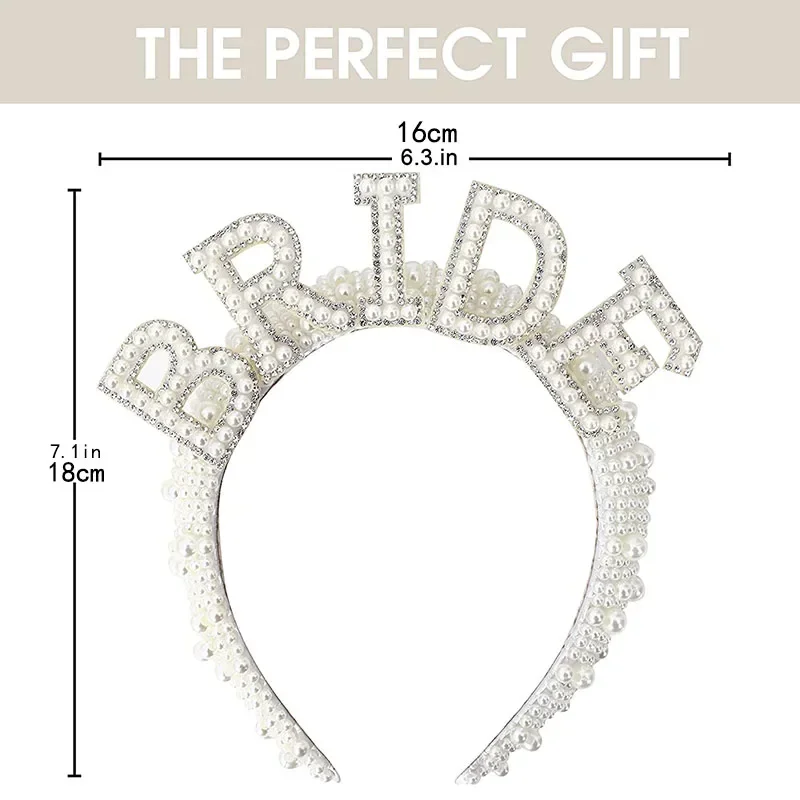 Easy to wear – our pearl headband itself measures 16cm (6.3") wide and 18cm(7.1") tall, while the "Bride" lettering above the actual headband!