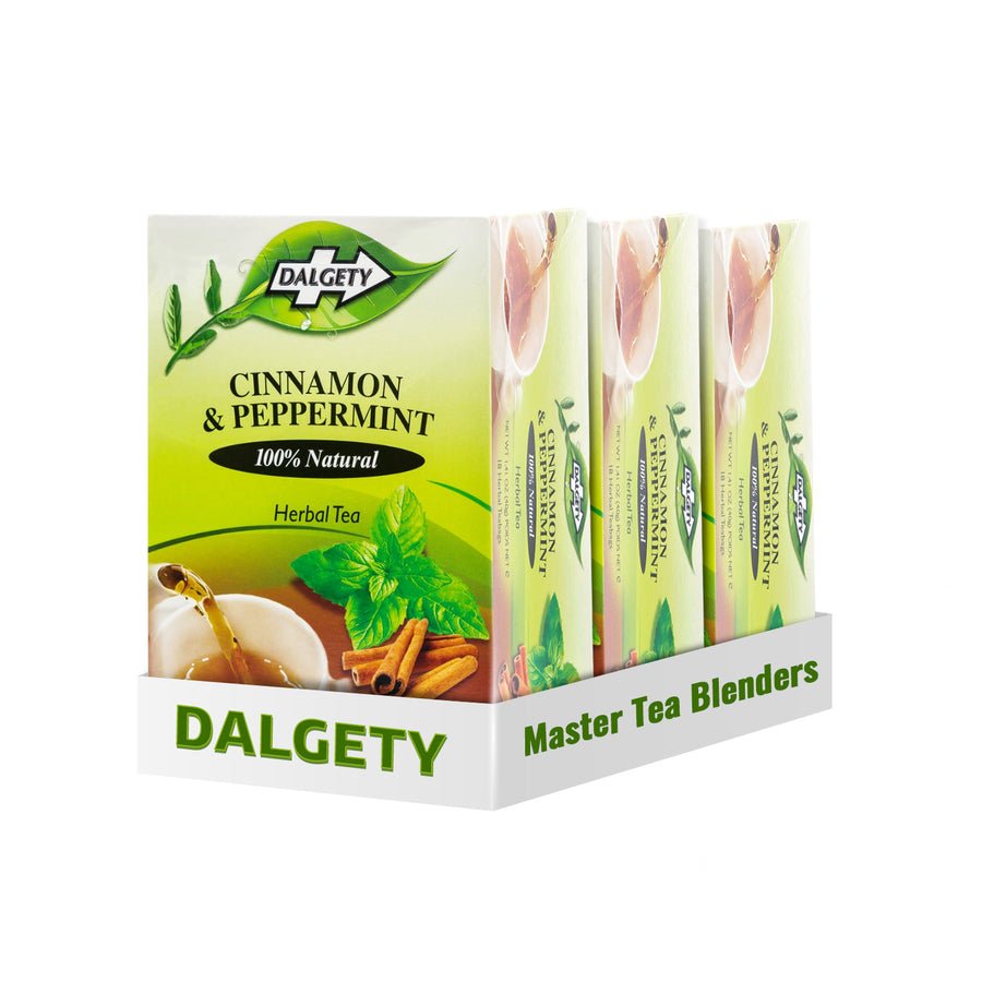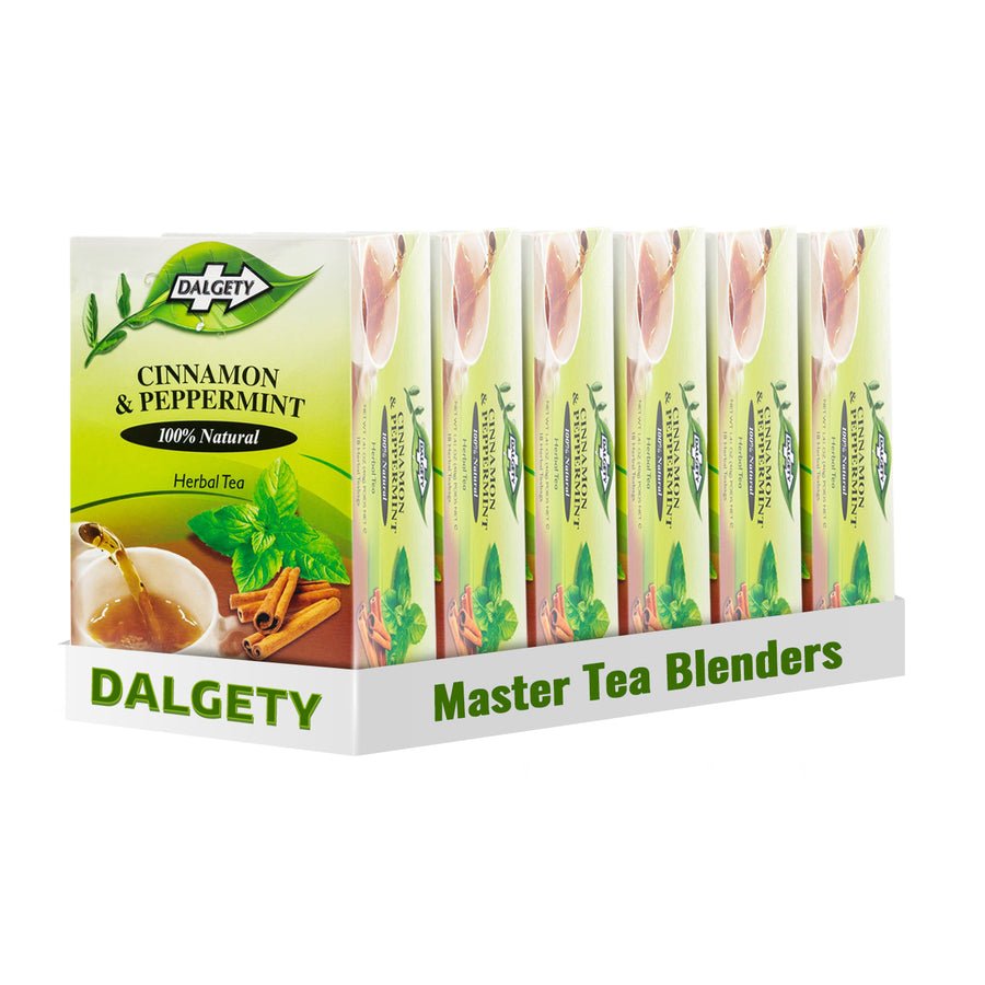 Dalgety’s Cinnamon & Peppermint is a 100% Natural, Caffeine Free, strong flavour herbal infusion. The infusion has a soothing sweet spicy taste for all benefits related to Cinnamon and Peppermint.