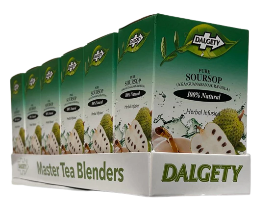 Dalgety’s Pure Soursop is 100% natural, caffeine free, tropical Infusion. The infusion has a mild subtle enticing taste associated with all the benefits of the great soursop plant.