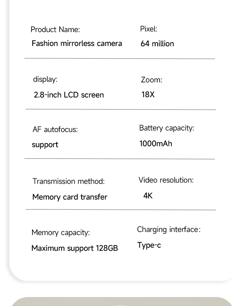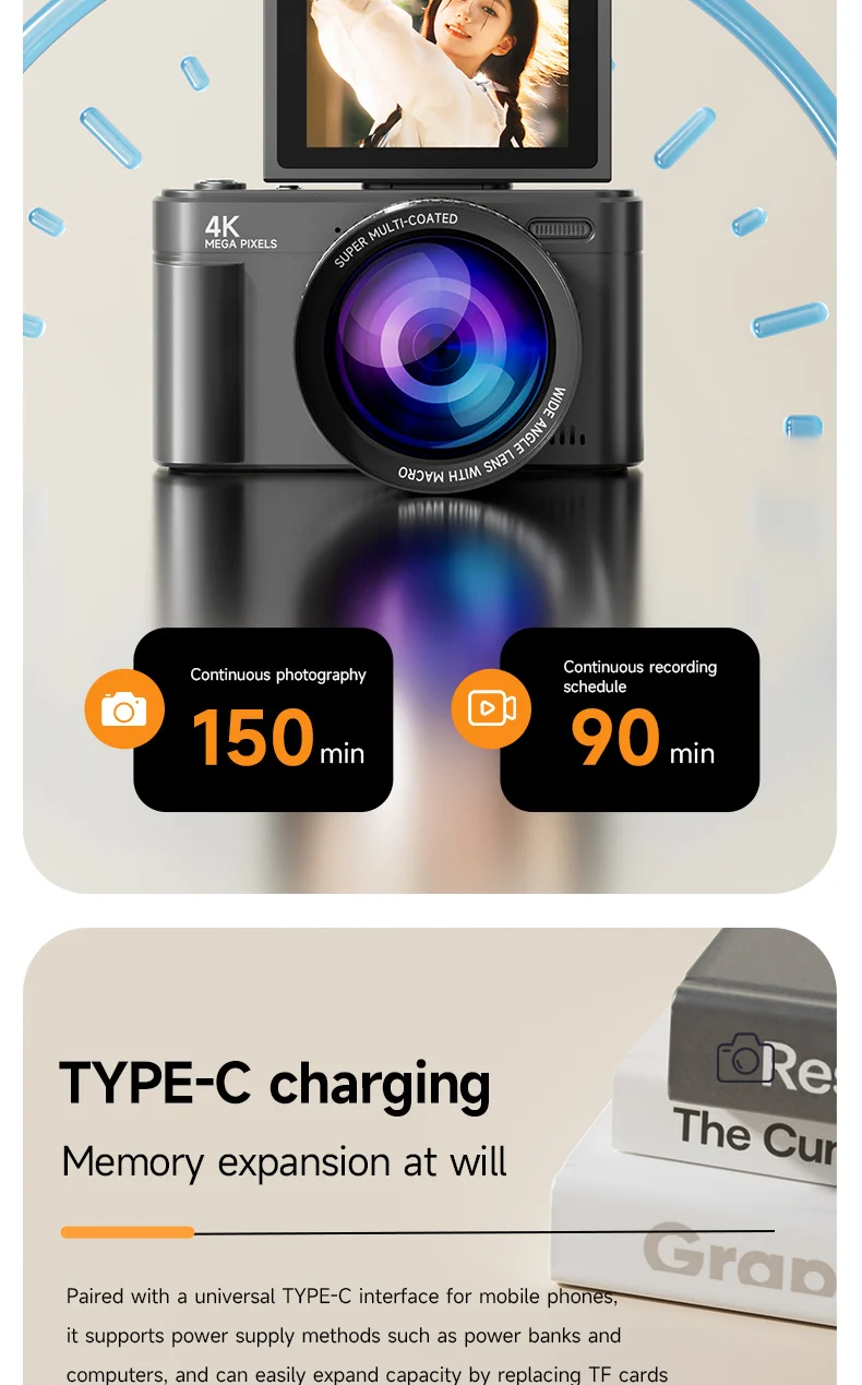 4. Webcam Function: As a rechargeable vlogging camera, it provides convenience for live streaming and online broadcasting. Simply connect it to your computer via USB to engage in video calls or stream live on other social media platforms.