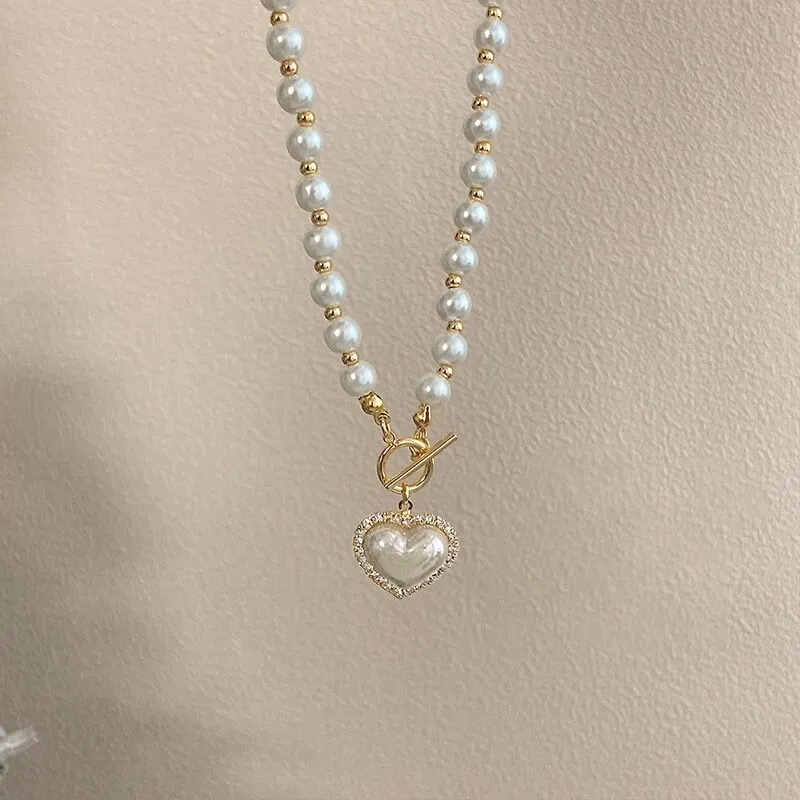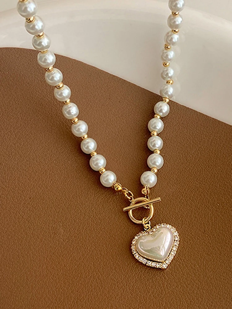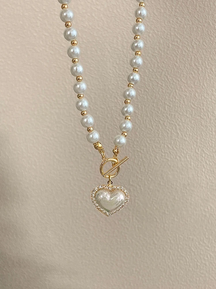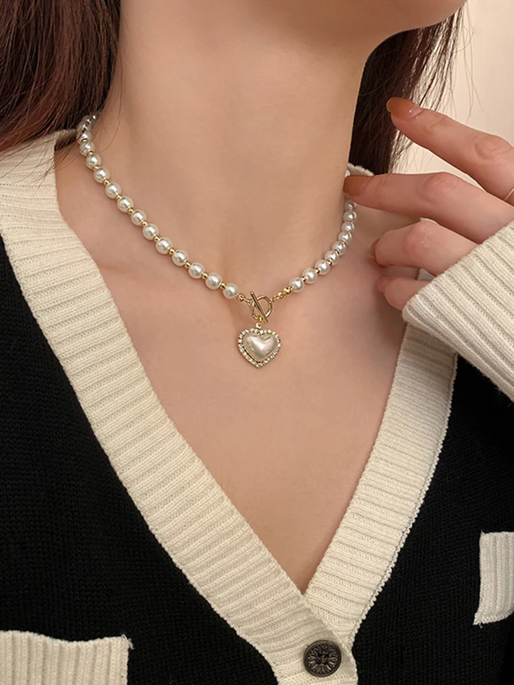 Elegant Pearl Necklace For Women Heart Pendant Necklaces Luxury Imitation Pearls Chain Necklaces Korean Jewelry Girls Gifts