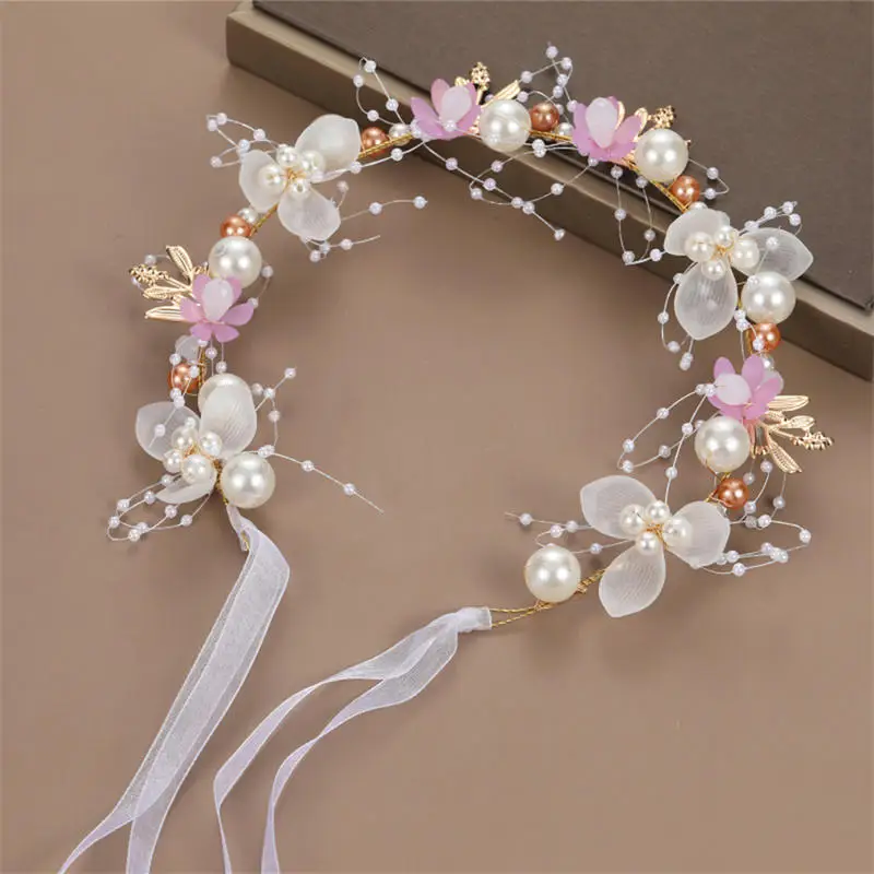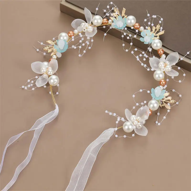 Headband And Wrist flower Pearl Crystal Corsage Bridesmaid Children Hand Flowers Marriage Beautiful Bride Wedding Accessories