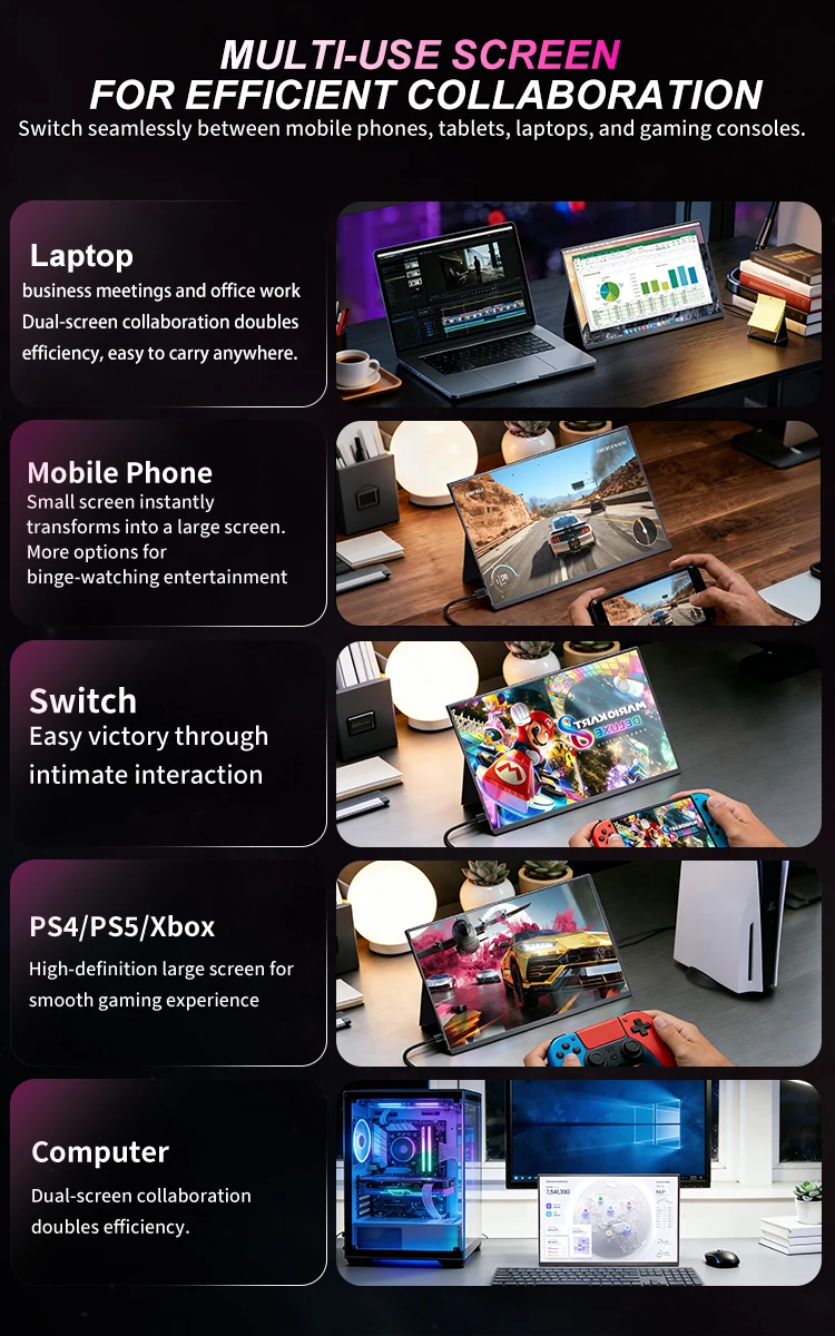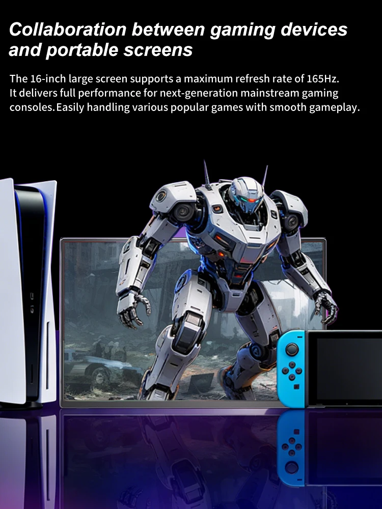 KTHIN 16″ 165hz Portable Monitor 1920*1200 16:10 100%sRGB 450Cd/m² Travel Gaming Display for Laptop Switch ps4 ps5 Xbox