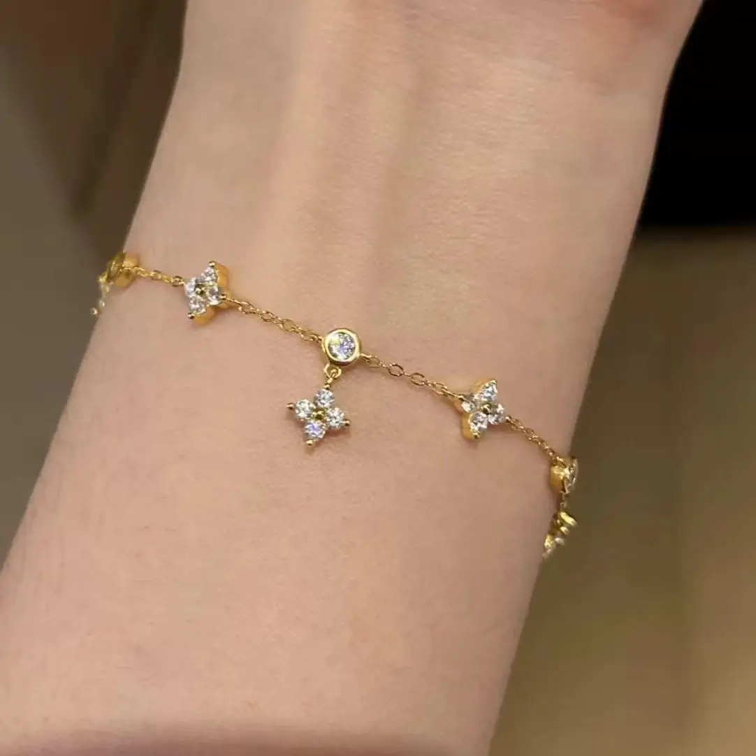 LGKGL Read S925 Sterling Silver Plated 18K Gold Sparkling Zircon Flower Necklace for Women Girl Exquisite Party Jewelry Gifts