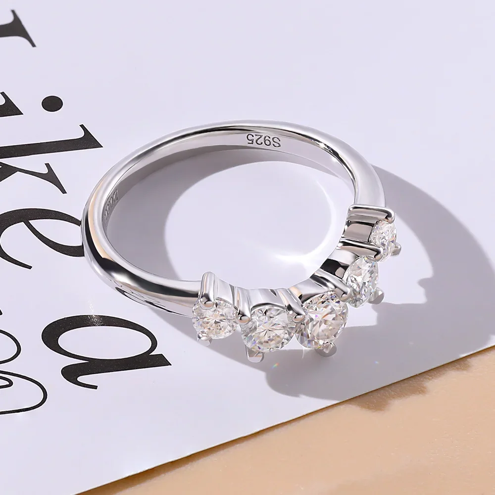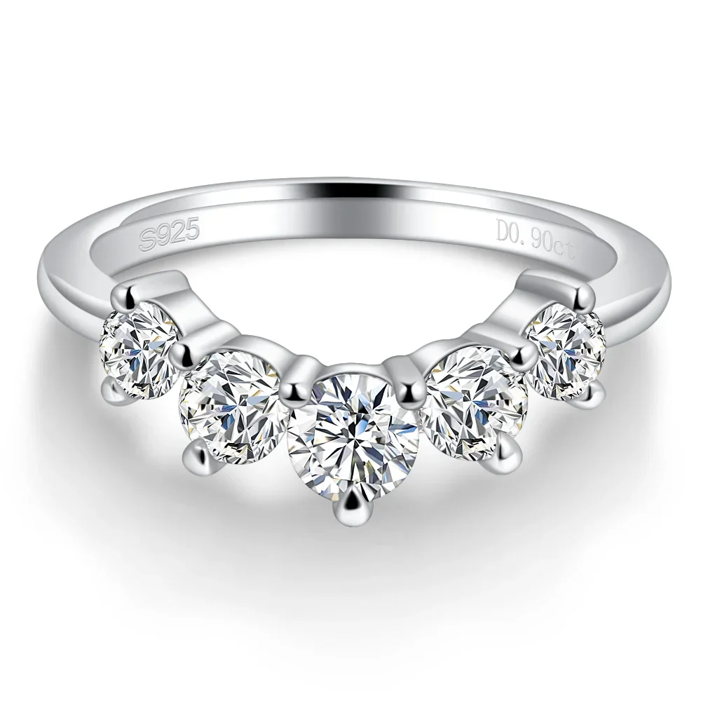 LinkerLove Half Eternity Moissanite Curved Wedding Band S925 Sterling Silver Crown Engagement Ring for Women Party Fine Jewelry