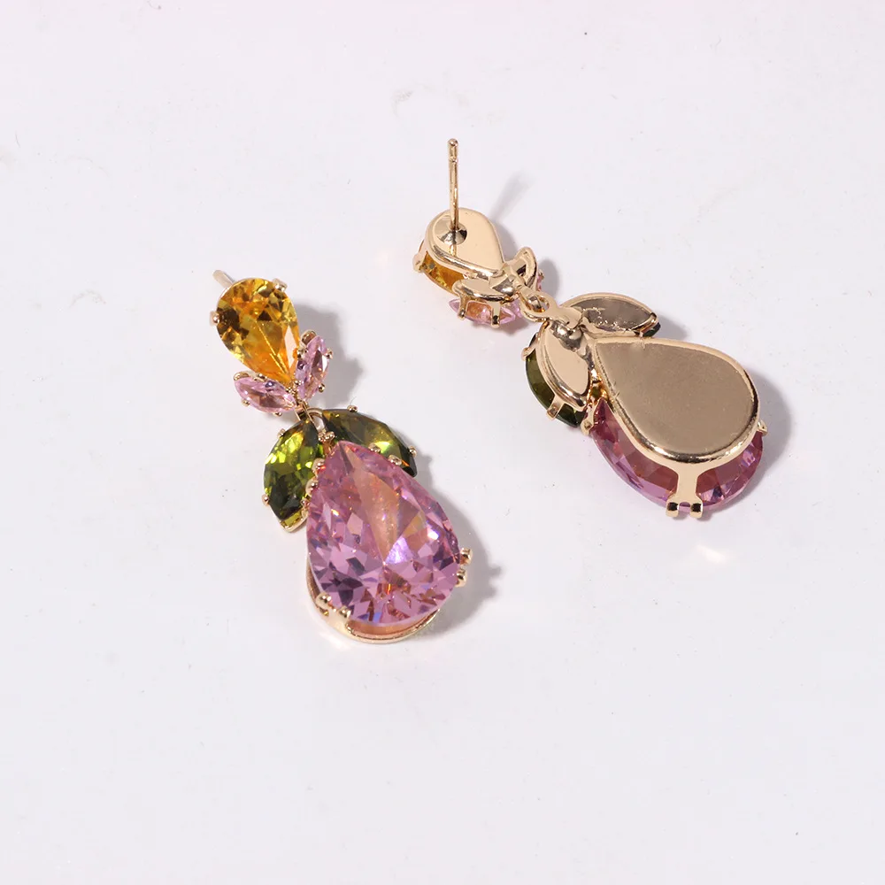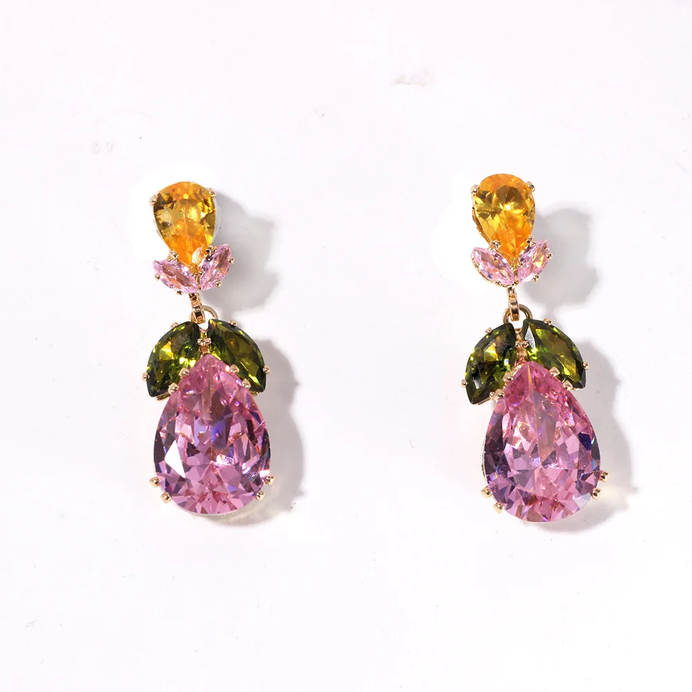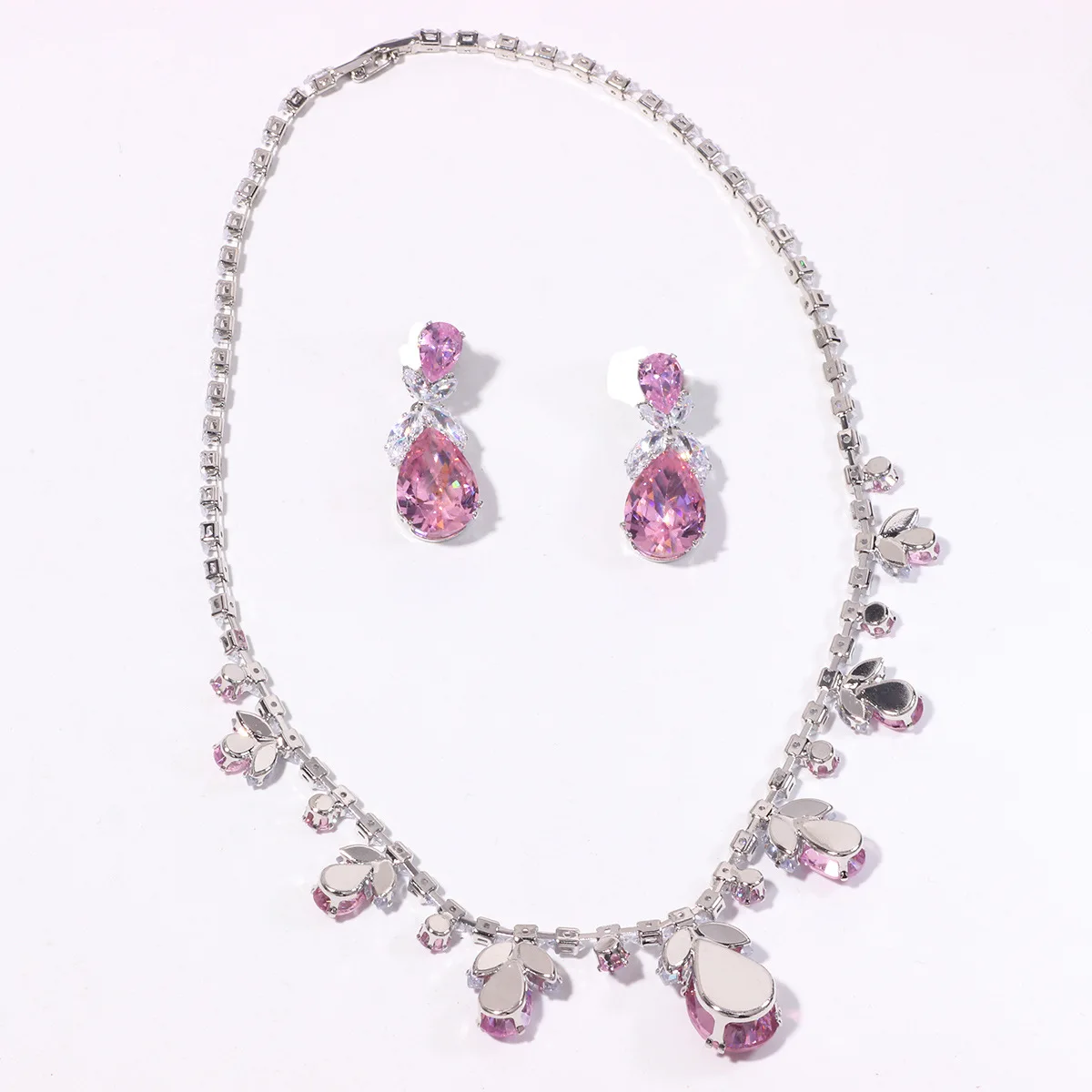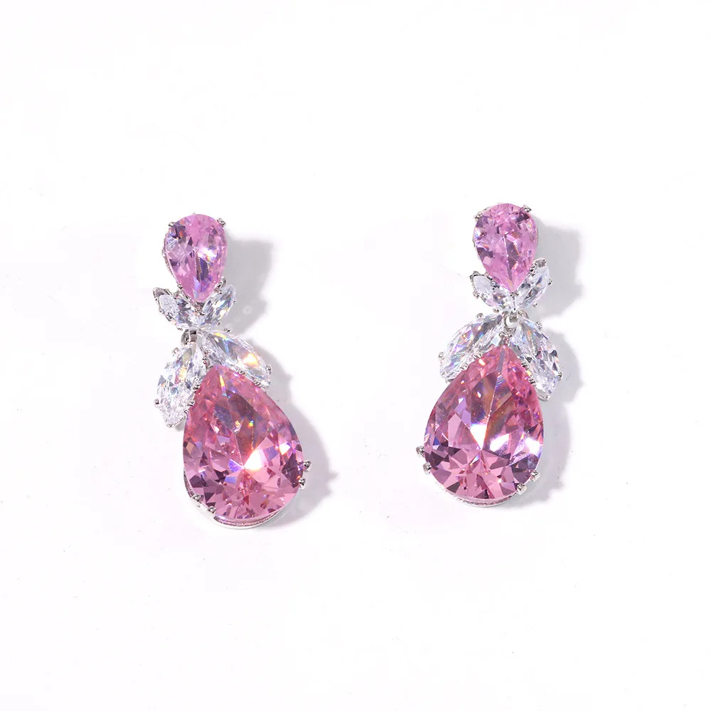 Luxury Waterdrop Pendant Jewelry Set Earring Pink Necklace For Women Bridal Wedding Exquisite Fashion Zircon Party Banquet Gift