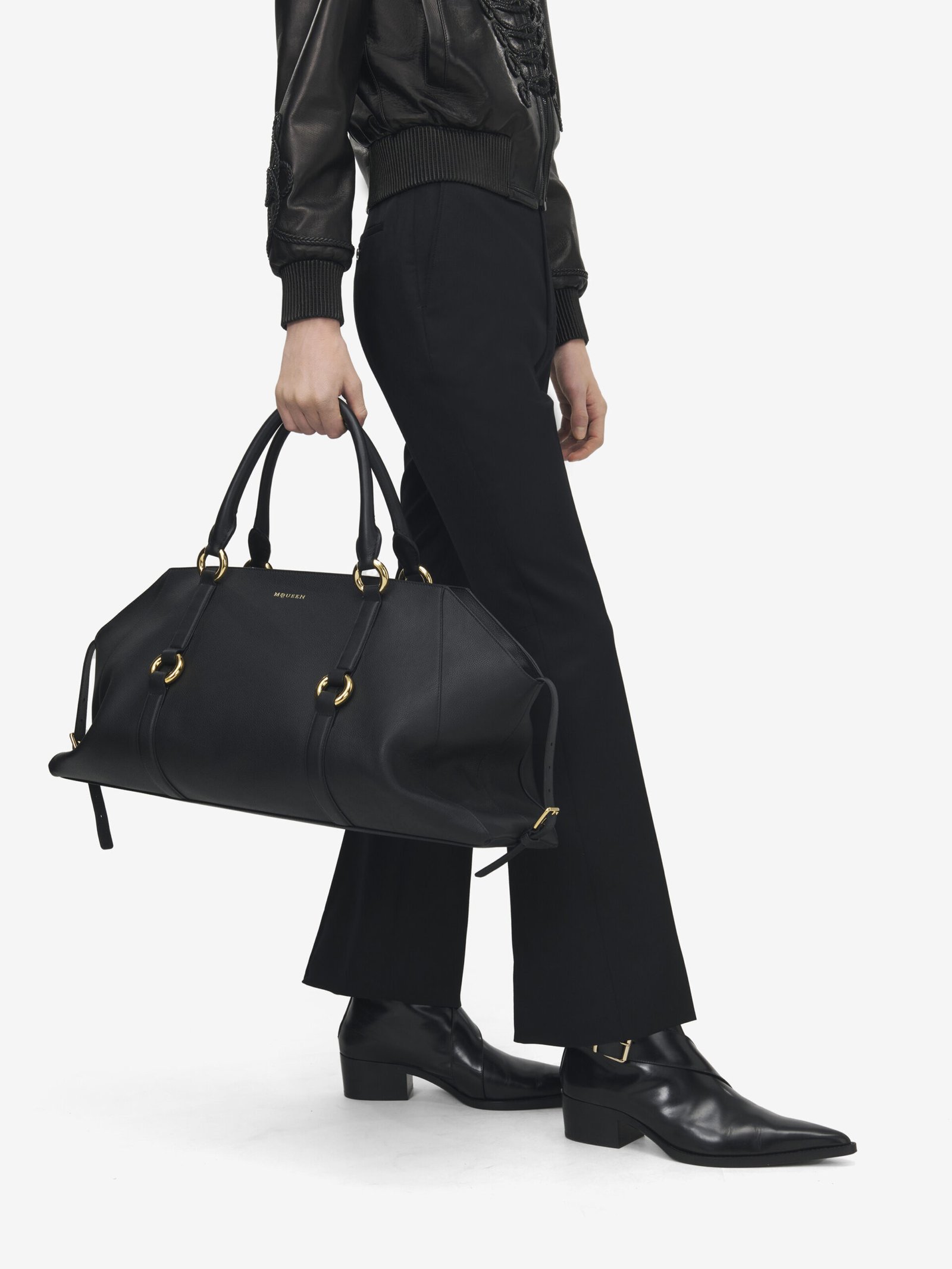 The Heron Buckle Boot – smooth black leather with a sharp pointed toe silhouette. Tonal leather strap with silver tone metal buckle. Finished with a back zip closure.
