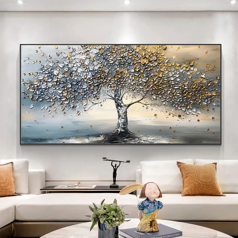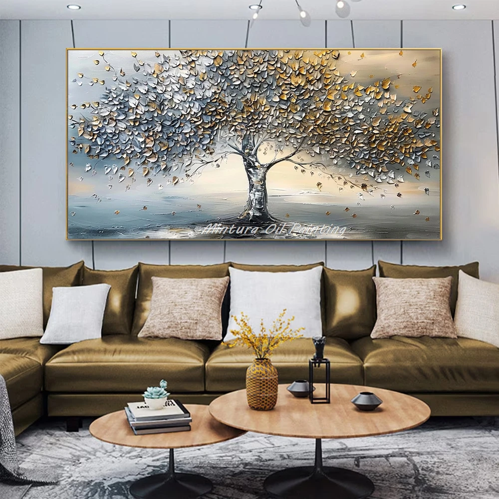 Mintura,Handmade Knife Tree Landscape Oil Painting on Canvas,Modern Home Decoration,Wall Art Picture,Abstract Textured 3D Poster