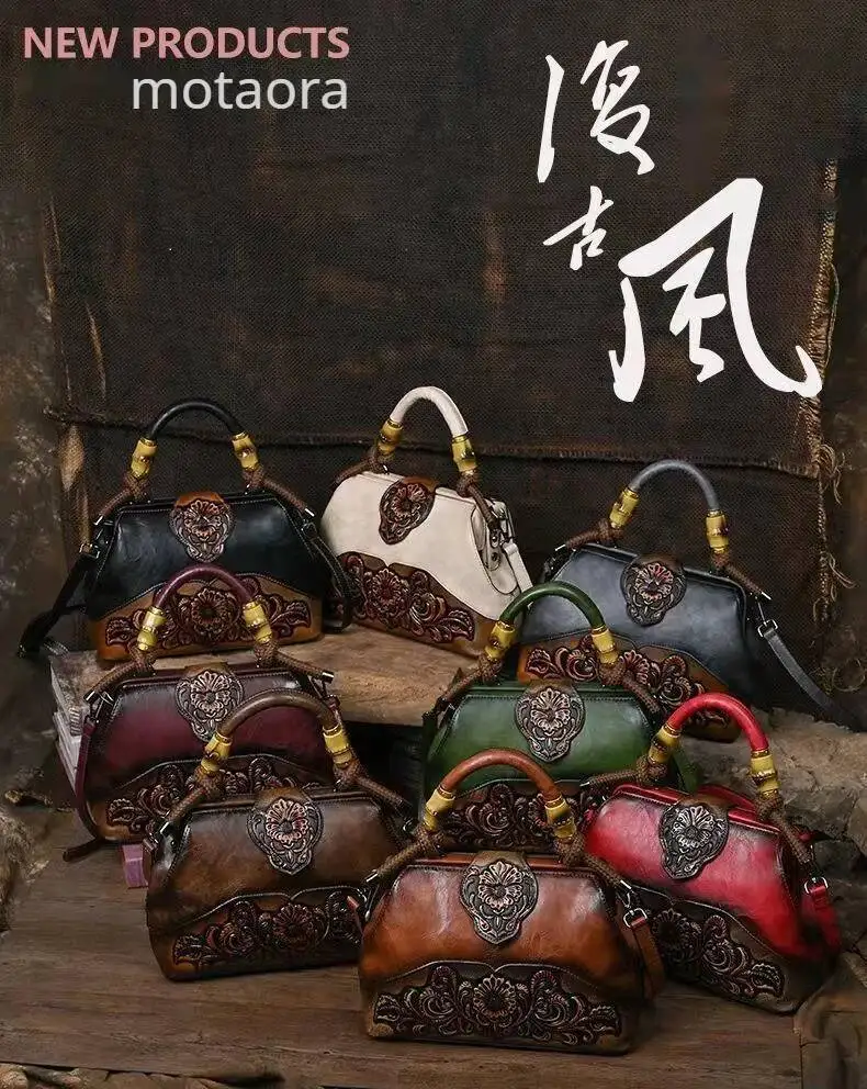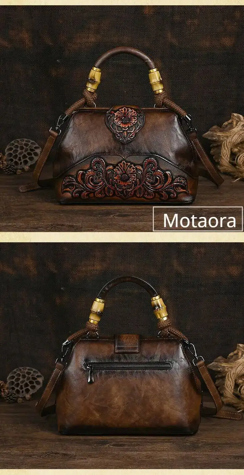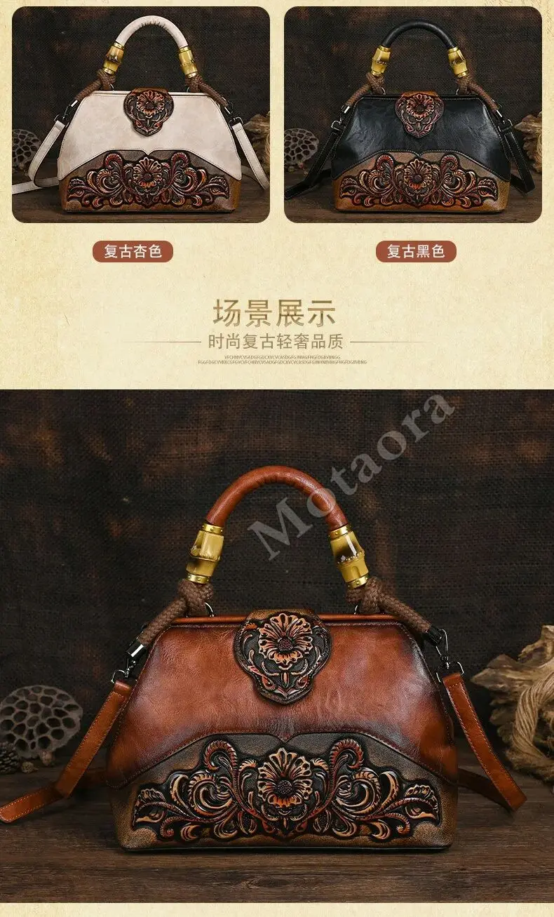 MOTAORA Handmade Luxury Handbags For Women Leather Shoulder Bags 2025 New Vintage Carved Ladies Hand Bags Designer Luxury Bag