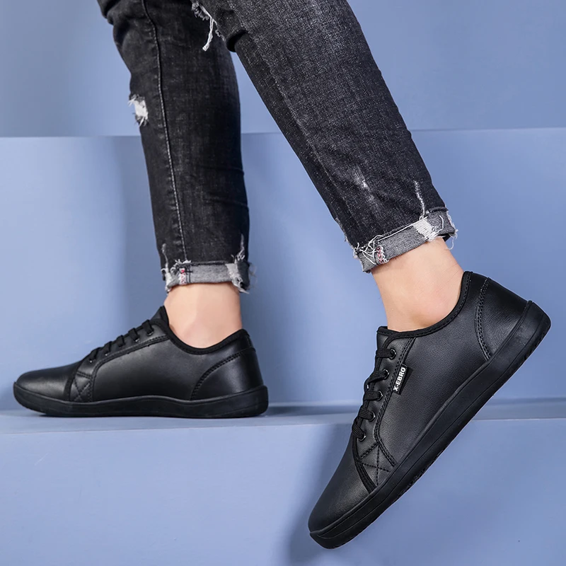 Oiaano Wide Toe Men Minimalist Shoes Comfortable Sneakers Leather Casual Shoes Black Slip On Leisure Loafers Drive Office