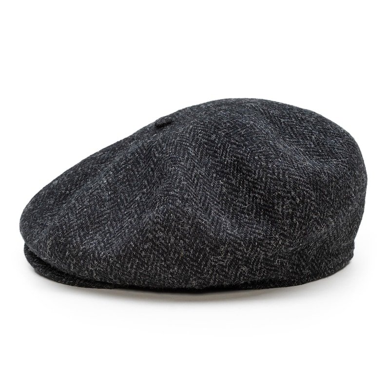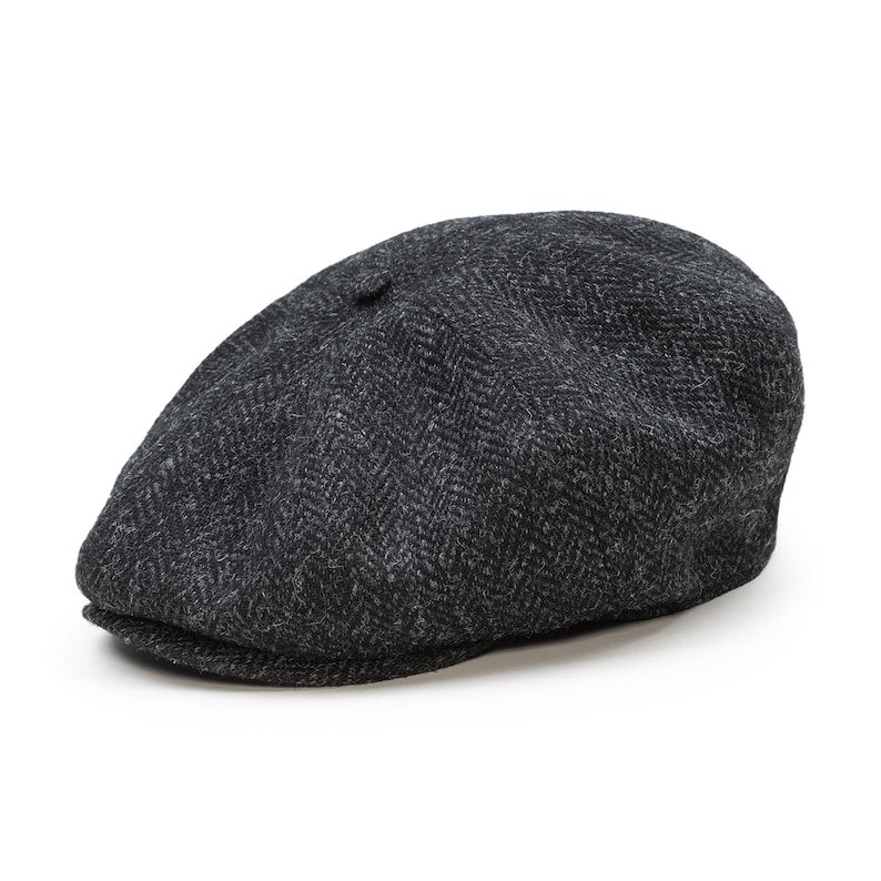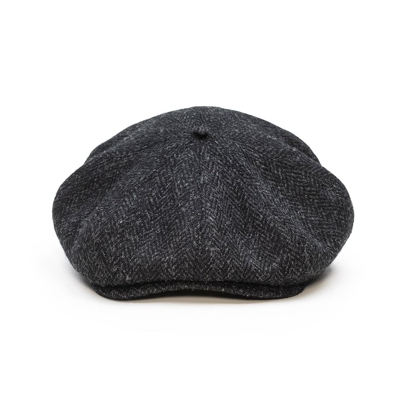 PEAKY Newsboy Harris Tweed |Style Genuine Scottish 8 Panel Classic Cap Vintage Gangster Baker Boy Hat Wool Big Crown Golf Hat BLACK-GRAY