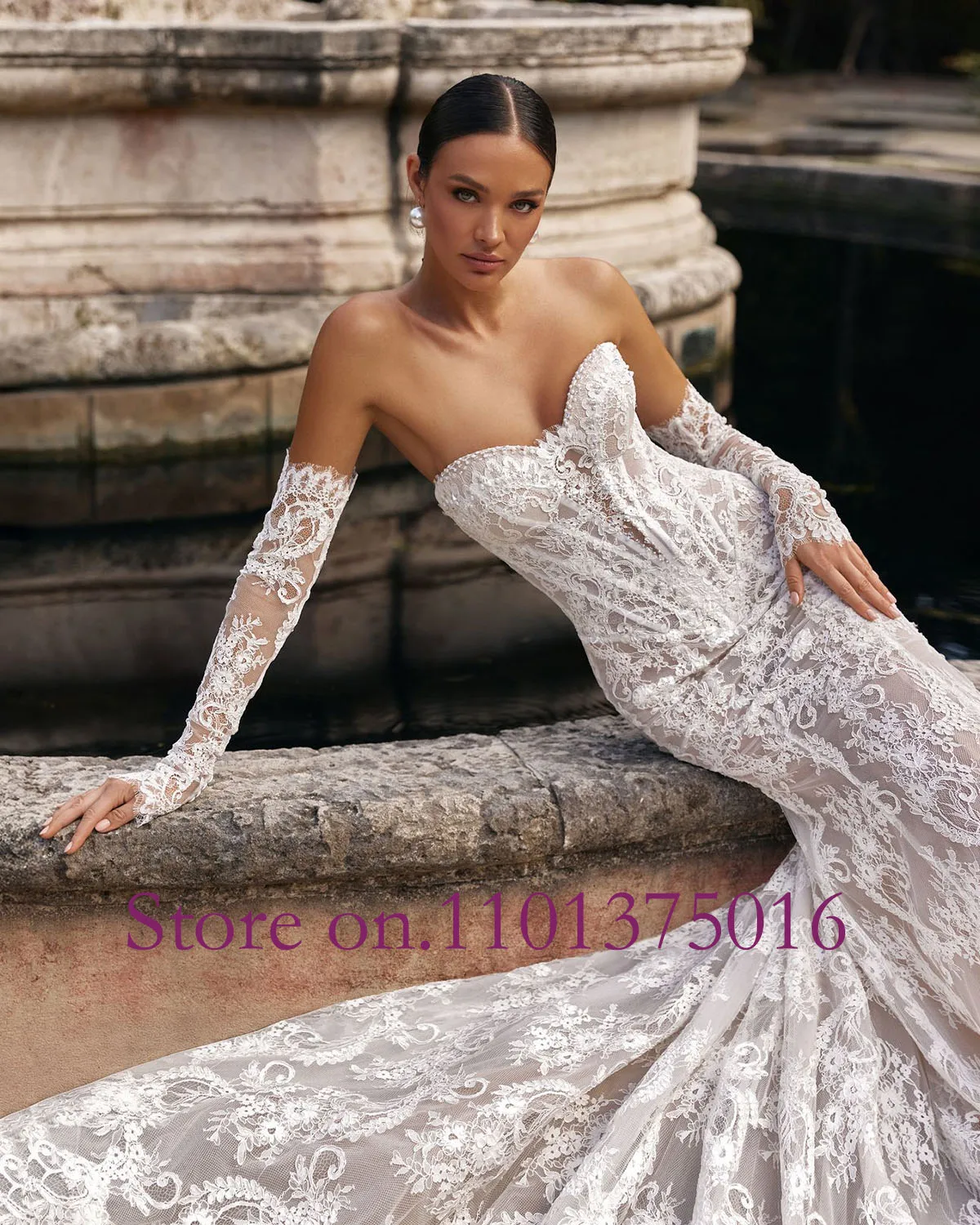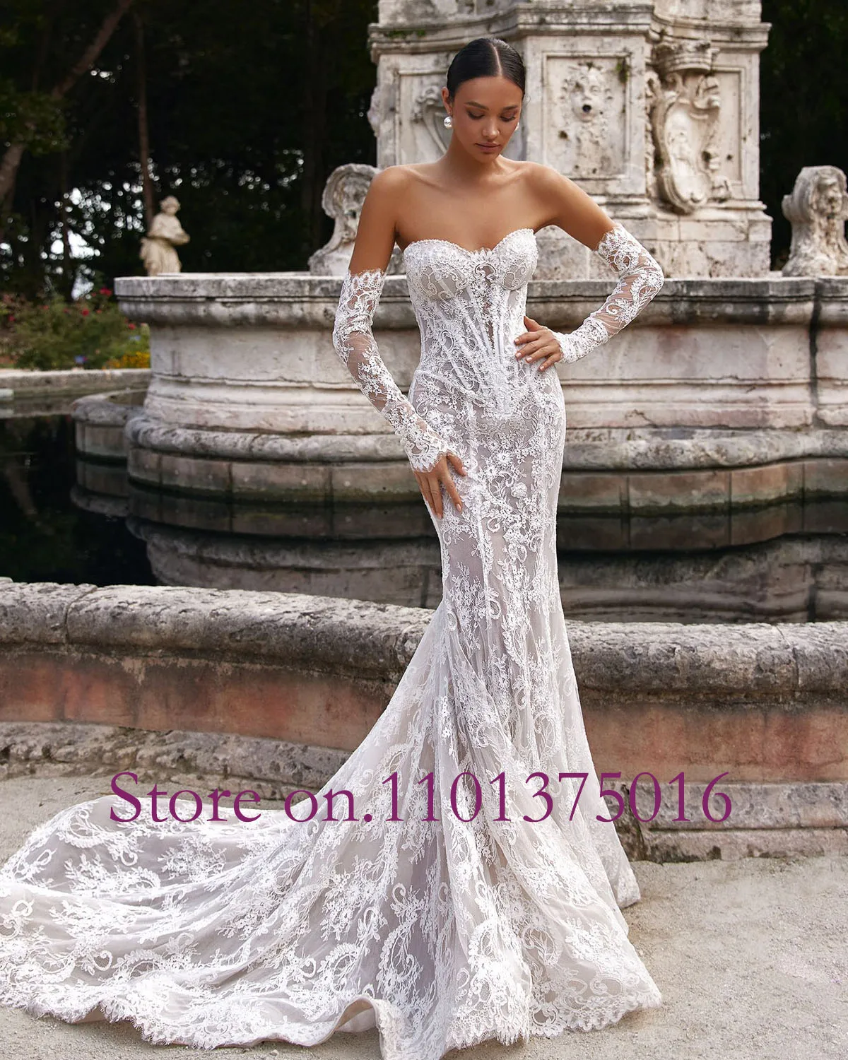Pearls Sweetheart Neck Detachable Long Sleeve 2 Pieces High Quality Lace Mermaid Wedding Dress Elegant Vestido De Noiva Sereia