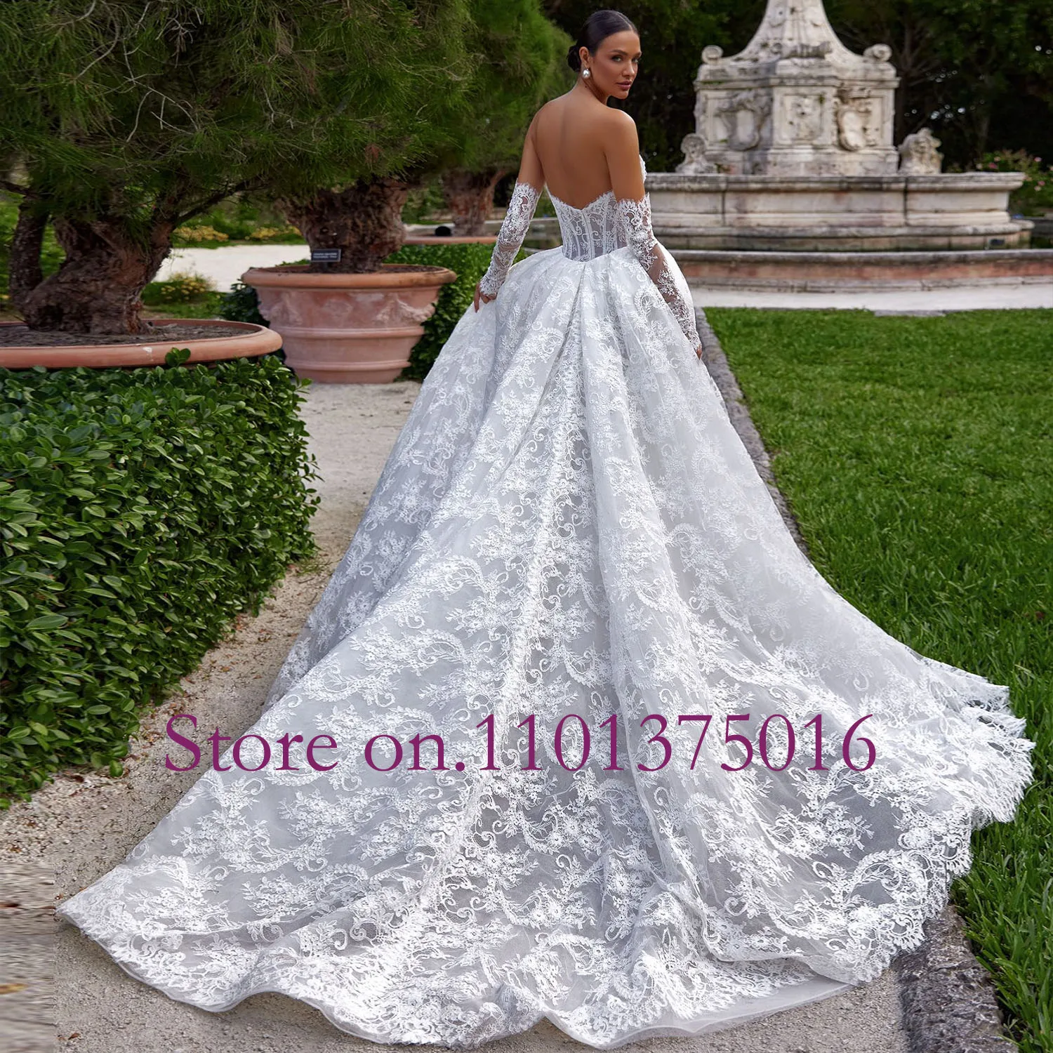 Exquisite Detachable Train Wedding Dress 2026 V Neck Mermaid Bridal Gown Lace Long Sleeve Wedding Gown Customized