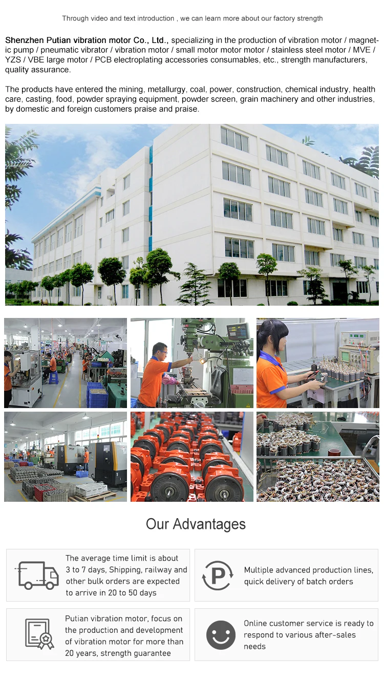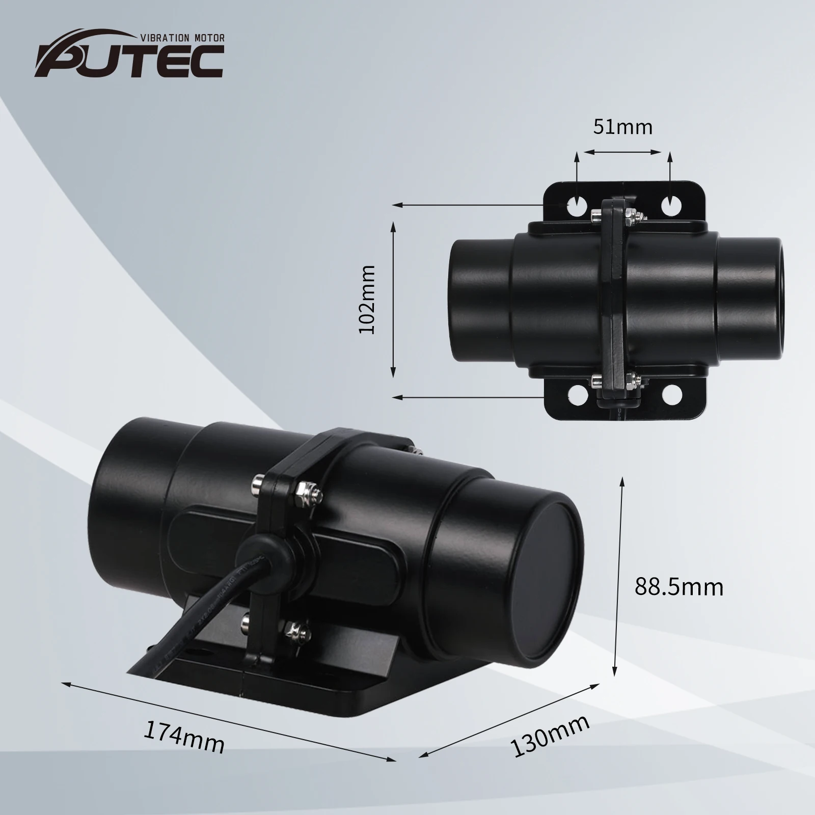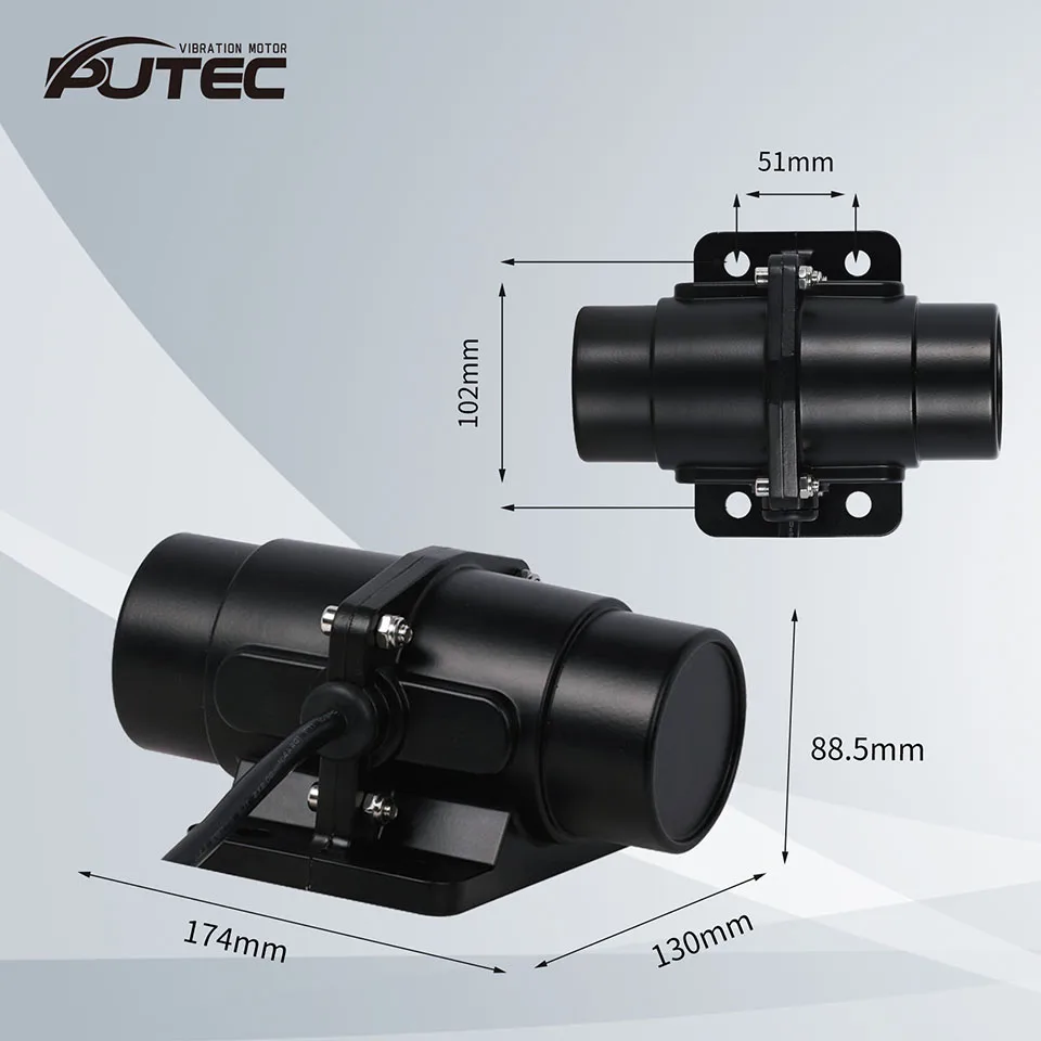 【Product Application】Putec Vibration Motor DC vibration motor is suitable for field, vehicle and no alternating current work place, suitable for storage hopper, silo, gate control, roll-on truck (concrete mixer, concrete pump, mortar, salt distributor, gravel spreader, fertilizer spreader, pull silo, industrial cleaning filter