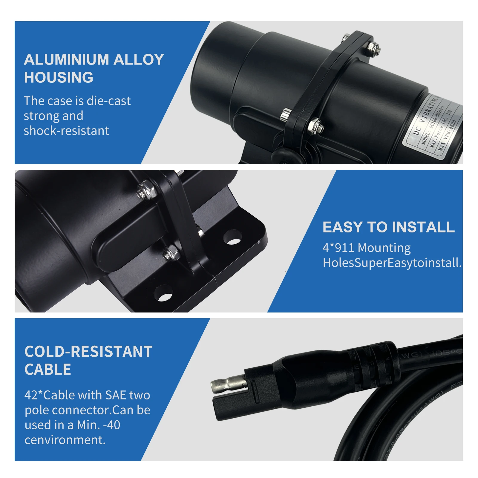 【Motor specifications】DC12V, vibration force 100/200 pounds ; Power:40/ 60 w; Motor speed: 4500 rpm