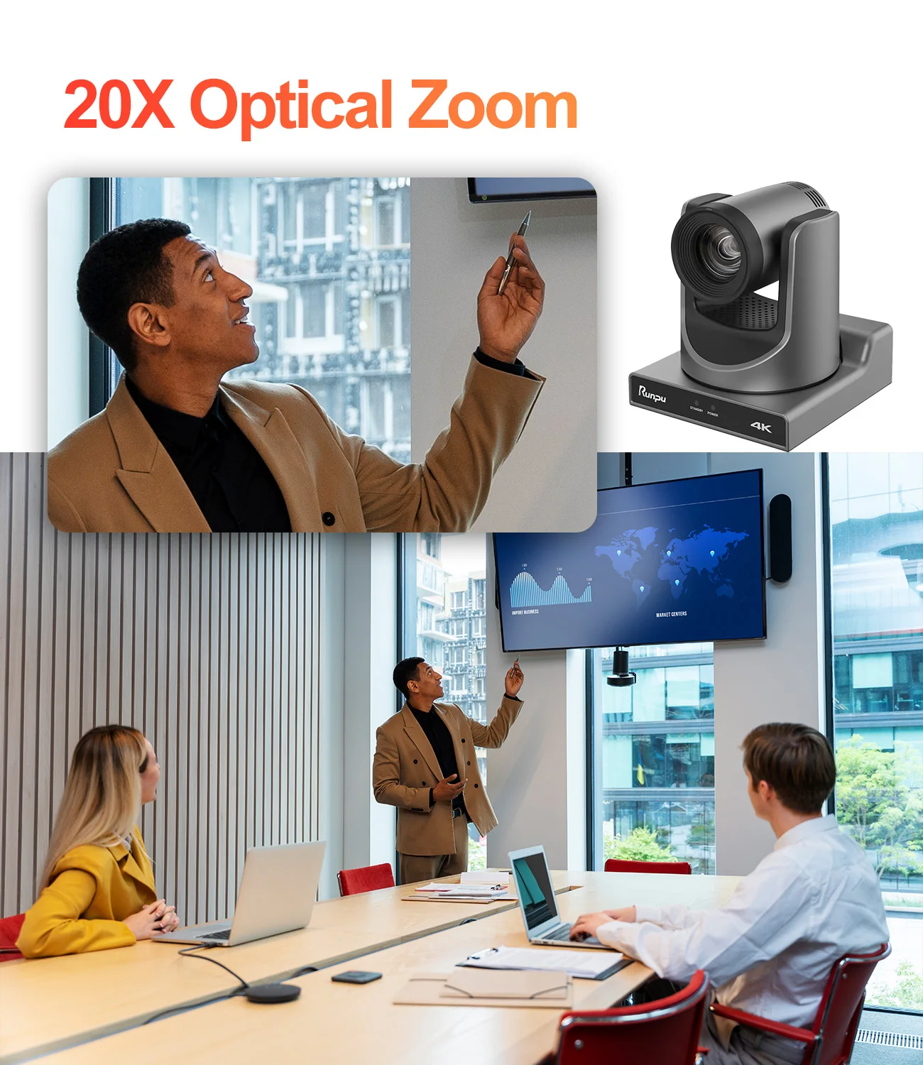 Runpu 4K60FPS NDI Camera POE 12X 20X Zoom AI Tracking PTZ Camera SDI HDMI USB POE IP Conference Camera for Church Live Streaming