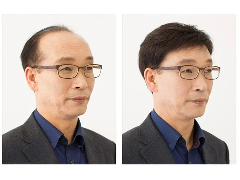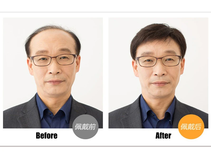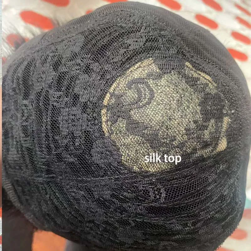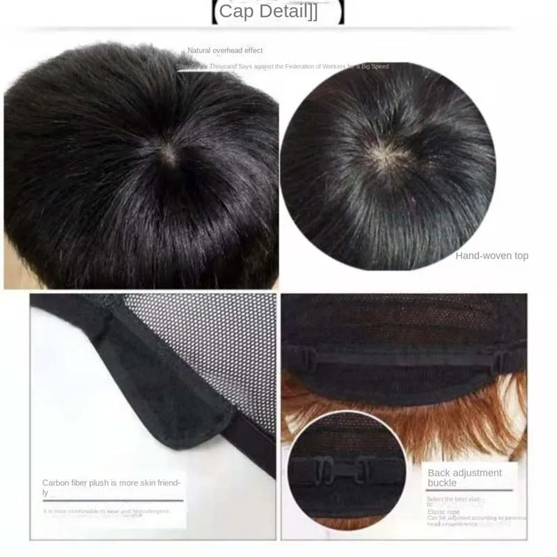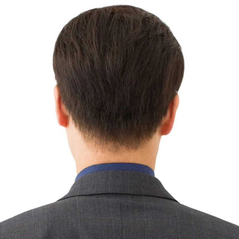 Short Natural Black Straight Human Hair Wig For Less Or No hair Male Men Comfortable And Breathable Silk Top Wigs Average Size