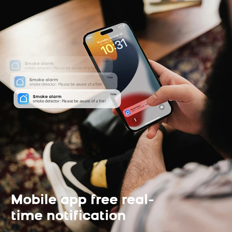 3.App Push Notifications and Control:Compatible with Smart Life and Tuya App enables the timely discovery of danger of fire or smoke and real- time notifications to your smart phone.