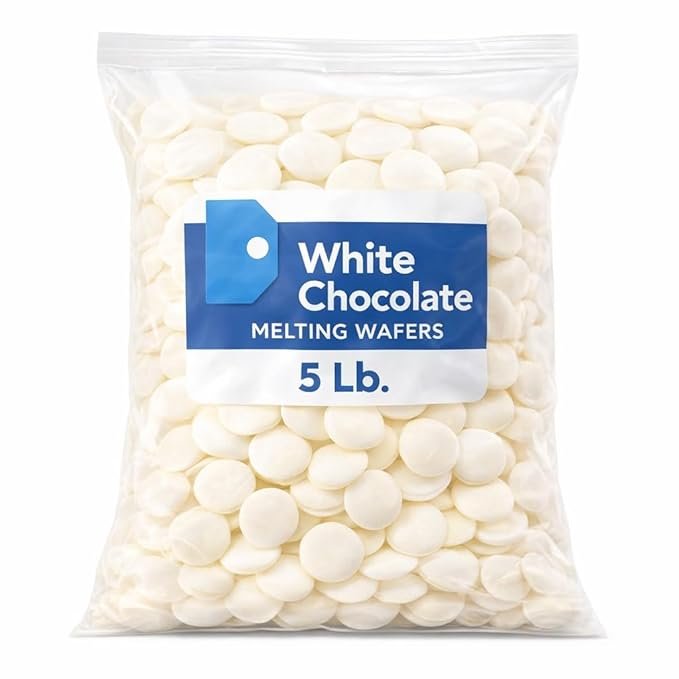 - 5 lb Bulk Bag of White Chocolate Wafers: Large, value-sized bag ideal for baking, candy making, dipping, and large batch dessert preparation. Smooth & Easy Melting: Formulated to melt evenly and smoothly, perfect for coating, molding, drizzling, and decorating desserts. Creamy, Sweet White Chocolate Flavor: Rich, smooth taste that adds sweetness and visual appeal to baked goods and confections. Versatile Baking & Decorating Ingredient: Ideal for cakes, cookies, brownies, cake pops, candy molds, and chocolate-covered treats. Great for Home & Professional Use: Suitable for home bakers, candy makers, bakeries, catering, parties, and holiday dessert prep.