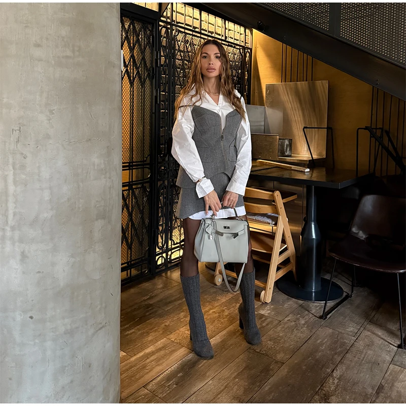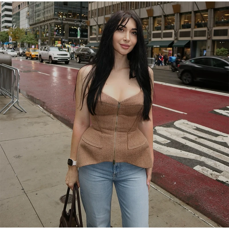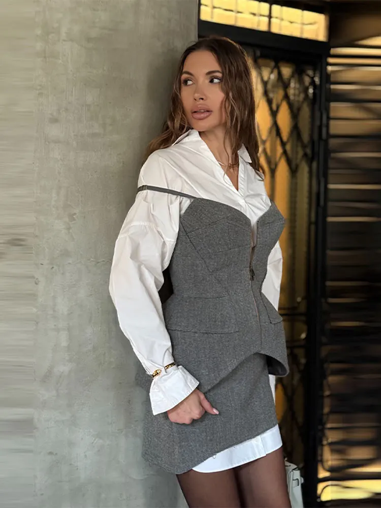 Women Fishbone Outer Slim Fit Top Solid Zipper Corset Waist Cinched Blouse 2026 Female New Spring Chic Casual Outwear Tops