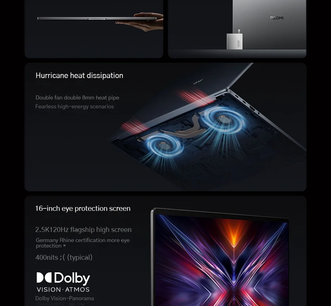 Fast charging: Equipped with a 100W GaN adapter, the laptop can be turned off at room temperature (25 ℃) without any additional devices connected. The charging time is as follows: 31 minutes to charge to 50%